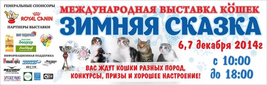 АфишаНет событий в ближайшее время | Международная выставка кошек «Зимняя сказка-2014»06дек-07дек @ 6,7 декабря в Доме молодежи пройдет международная выставка кошек «Зимняя сказка-2014». (0+) С 10.00 до 18.00. Телефон кассы Дворца молодежи: 5-36-37. Справки по телефонам: 5-32-10, 5-52-02, 5-24-76. Адрес: ул.Зернова, д.64. Комментарии