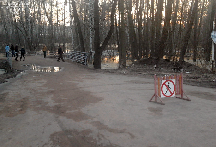В настоящее время частично подтоплены тротуары вдоль Саровки от пруда Борового до Пищекомбината, затруднен проход через мостик от Комсомольской площади к зданию 87 ВНИИЭФ, поэтому там выставлены знаки, запрещающие движение пешеходов. Администрация города и управление по делам ГО и ЧС просит жителей Сарова временно изменить привычные маршруты пешего движения на этих участках или пользоваться автотранспортом.
